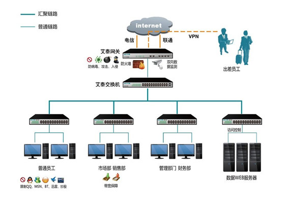 隨著信息化高速公路到來(lái),越來(lái)越多的中小型企業(yè)加快了信息化的進(jìn)程,紛紛組建信息化網(wǎng)絡(luò),以提高工作效率、但是以前由于包括成本,專(zhuān)業(yè)等各方面的原因,使的眾多的中小企業(yè)面臨著網(wǎng)絡(luò)系統(tǒng)脆弱,因此導(dǎo)致網(wǎng)絡(luò)故障所引起的成本損失已經(jīng)不可計(jì)數(shù),逐漸成為中小企業(yè)災(zāi)難性的問(wèn)題。艾泰科技推出了一整套網(wǎng)絡(luò)解決方案,助企事業(yè)單位的建設(shè)一個(gè)高速穩(wěn)定的網(wǎng)絡(luò),提升企事業(yè)單位的工作效率。