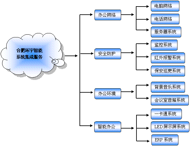 合肥市環(huán)宇智能工程有限公司服務(wù)目標(biāo)是為企業(yè)量身定制一整套適合企業(yè)自身的集成系統(tǒng)方案,方便客戶更好的管理與維護(hù)。